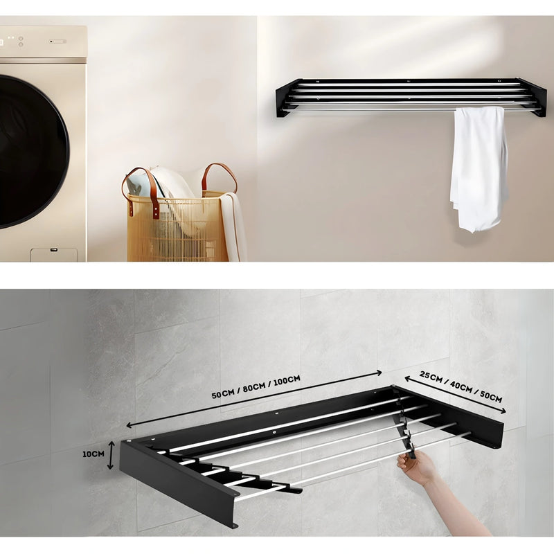 Jag älskar att den är så mångsidig! Jag har monterat en i badrummet och en i tvättstugan, och båda funkar perfekt. Materialet är riktigt bra kvalitet, och den är perfekt för att hänga upp blöta kläder och handdukar utan att ta plats.